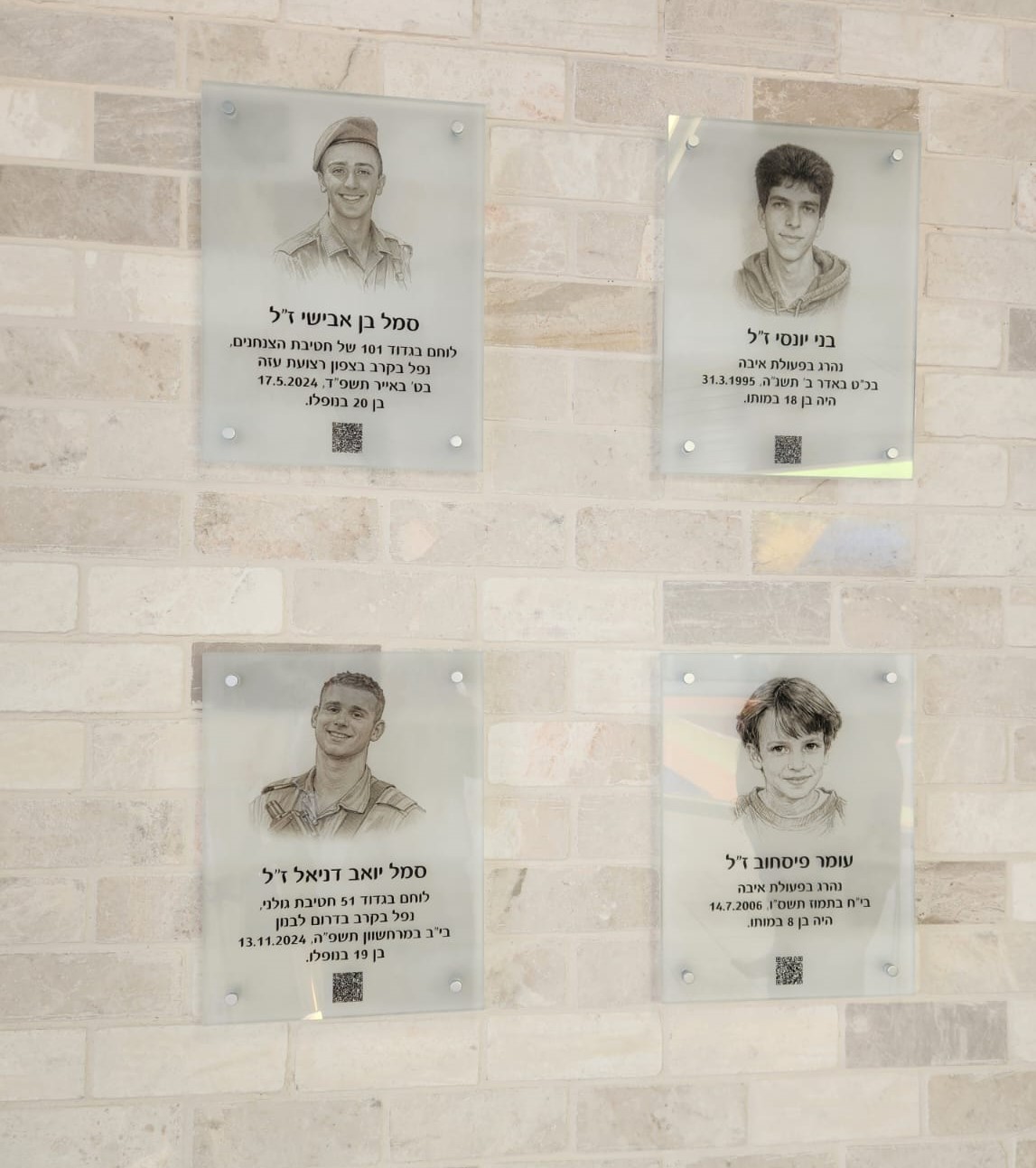 קיר עם לוחות הנצחה וזכרון קיר הנצחה בבית ספר רעות בנהריה קיר הנצחה לנופלים של עובדי קופת חולים הכללית לוח תורמים ענק שלט זכרון והנצחה